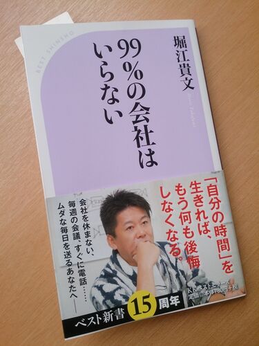 堀江貴文氏の本『99%の会社はいらない』を読みました。Twitterでホリエモンをフォローしていると、しきりにこの本のレビューリツイートが流れてくるので気になっていたんですよね。「ステマ」どころか、「マ」ですねwww