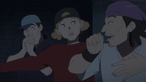 第2話のラップと言えば「さくらVSサキ」のフリースタイルですよね。 でも、その前に! 「サガ・アーケードラッパーズ(モブラッパー3人組)」の、あのラップがあって、か・ら・の・「さくらVSサキ」って流れですからね。 これ重要。忘れないでください。 「…